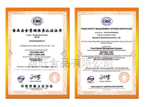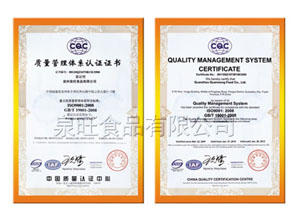 2004年通过 ISO9001:2000及 HACCP认证 2004年度全国外商投资“双优”企业 05、06、07年通过美国AIB食品认证 05、06、07、08年度自营出口创汇大户 08、09年通过美国BRC全球食品认证 海关A类管理企业